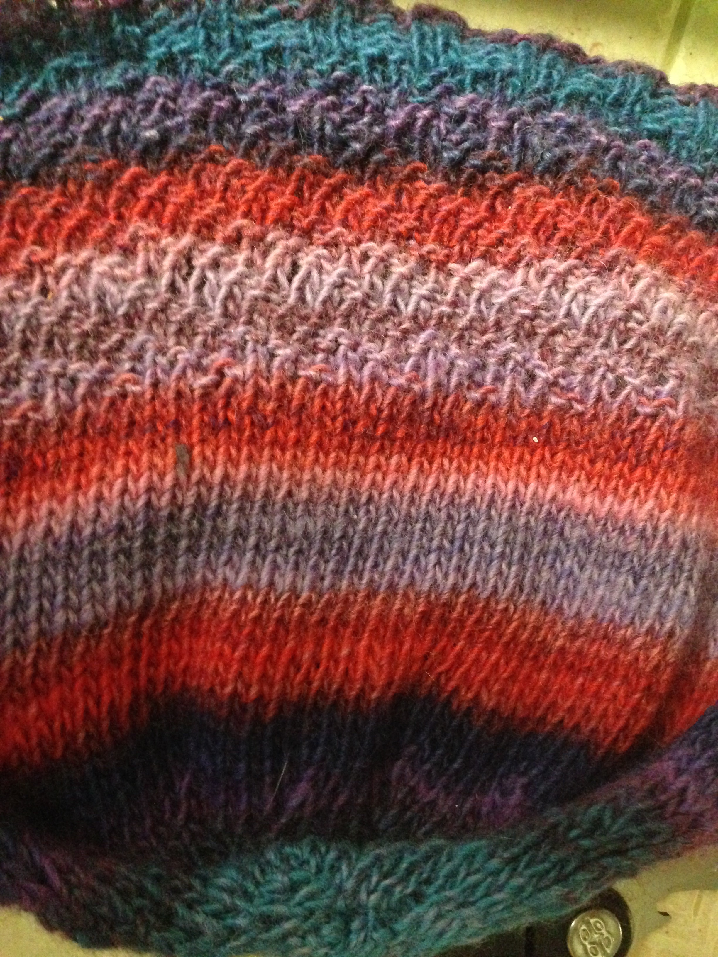 Then I remembered steeking. I’d read about it in some knitting books, but never actually done it, nor seen it done. I looked up some YouTube tutorials on the process, and saw that it required more skill and foresight than I had for this project. Today, I said, screw it, I have nothing to lose at this point.